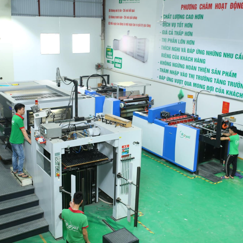 Royal đầu tư hệ thống máy in offset Mitsubishi Daiya nhập khẩu từ Nhật Bản, kết hợp với công nghệ in UV và kỹ thuật số.